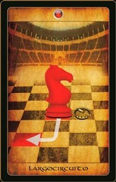 El Caballo en el Ajedrez es una pieza capaz de realizar movimientos sorpresivos y evasivos geniales. El Caballo Rojo del Tarot en PHI, además, es consciente del Tablero en el que juega, y de las trampas camufladas en cada uno de sus escaques. Únicamente subido a su montura podrás efectuar el movimiento preciso que invalide a tu Yo, y colocarte nuevamente al frente del campo de Batalla.